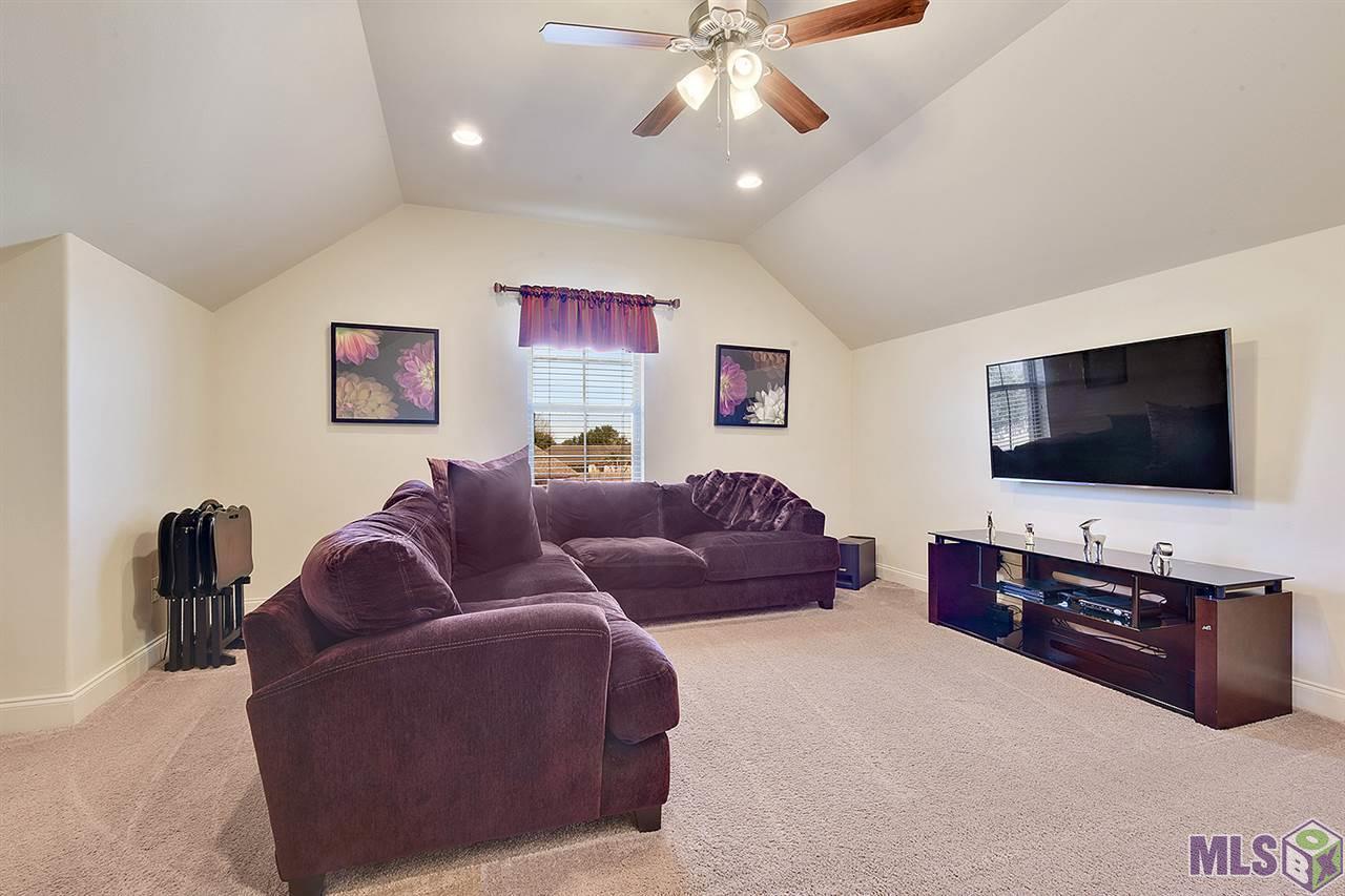 Home is a good as new! The home is located in the quaint Hidden Cove area of Pelican Point and looks like the day the home was purchased! Entering through the front door, you walk into a spacious open floor plan with designer wood flooring. The living room, kitchen, and dining room are all open to one another. The kitchen features custom stained cabinets. There are many windows that let in plenty of natural light. The home comes with window décor in the living room and dining room. It has three spacious bedrooms downstairs including a large master. It also features upgraded stained wooden staircase that lead up to a bonus room above the garage. The bonus room is perfect for a media, bedroom or workout room!