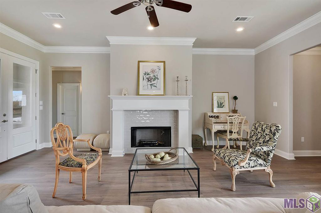 The Meauxville Plan has a beautiful entry courtyard which opens into the family room or the kitchen. The family room has large windows overlooking the porch. You will love cooking in the gourmet kitchen. It has custom cabinetry, granite counter tops, ceramic tile and a pantry. The master suite has a large walk-in closet with plenty of storage, a separate tub and walk in shower, and two sinks. There are two additional bedrooms that share a bathroom. The home comes with a two car garage and a bonus room above it with its own bathroom.